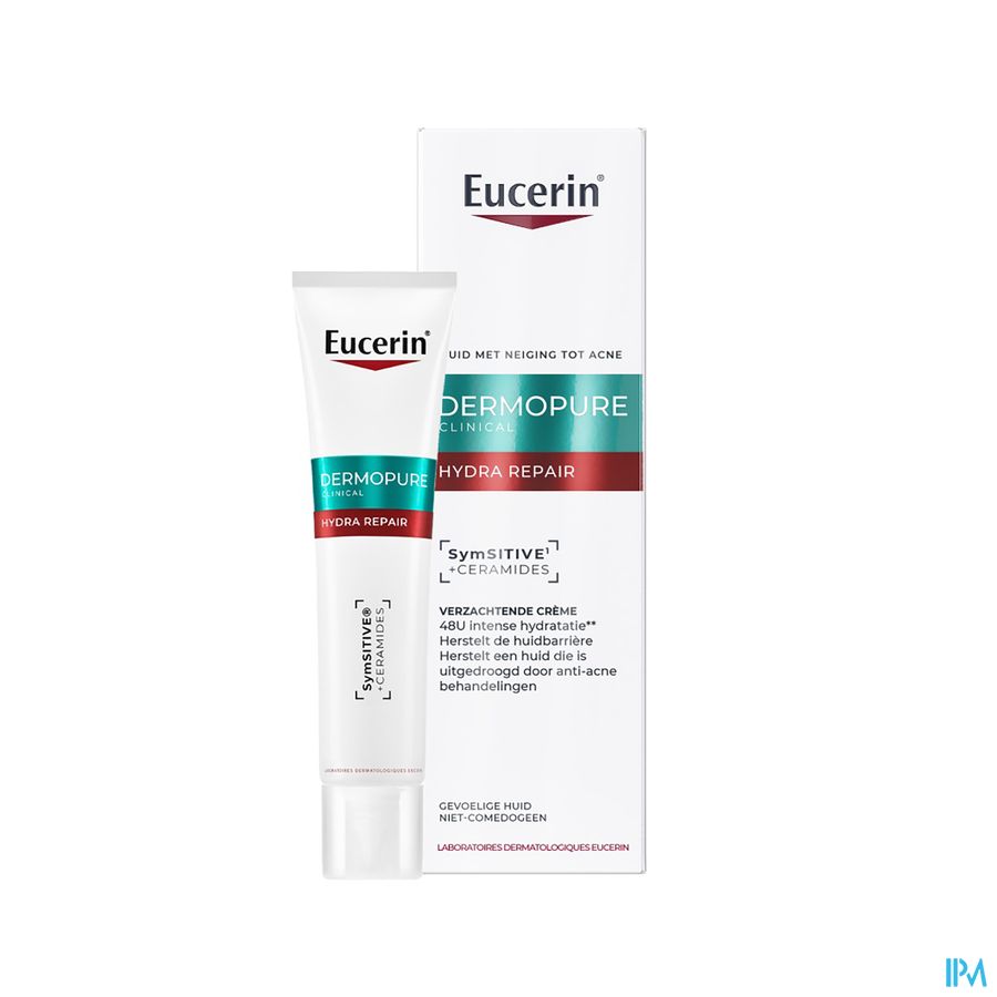 Eucerin DERMOPURE CLINICAL Hydra Repair a été testé sous contrôle clinique et dermatologique. Elle soutient la réparation de la barrière cutanée lors de l'utilisation de traitements médicaux desséchants contre l'acné. Avec Symsitive™ et des céramides pour réduire instantanément les sensations de démangeaison, de picotement et de brûlure.