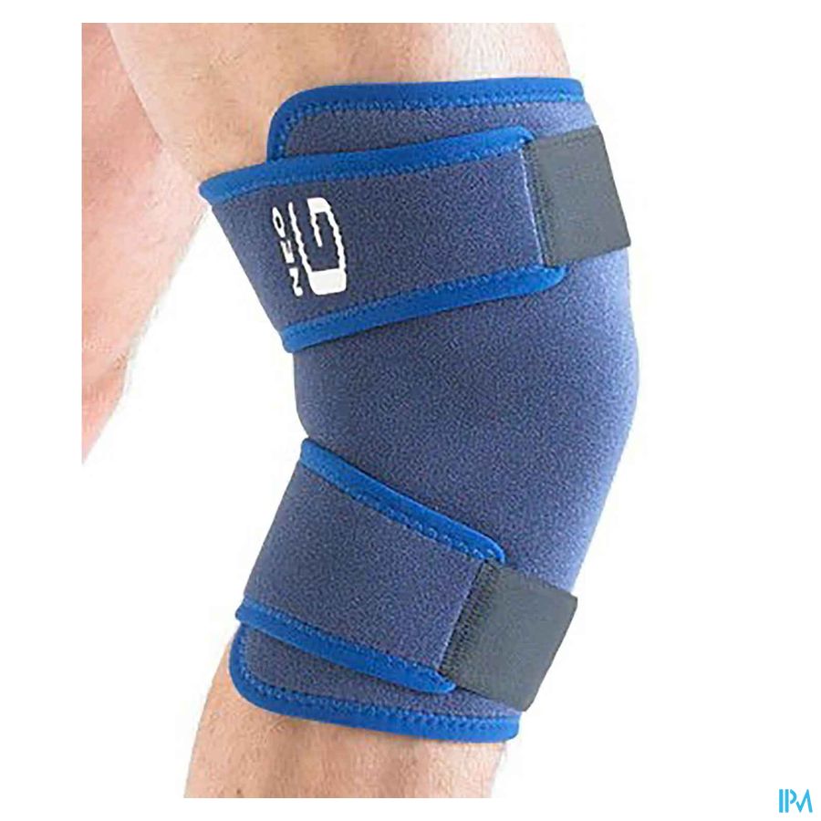 Utilisé comme bandage de soutien stable lors de la surcharge du genou. Le bandage est placé au milieu, autour du genou puis on tire sur la bande du milieu. Ensuite, on fait la même chose avec la bande inférieure et la bande supérieure jusqu'à l'obtention d'un soutien confortable. Taille unique, utilisable bilatéralement. Maximale 56 cm (à mesurer 10 cm au-dessus de la genou).